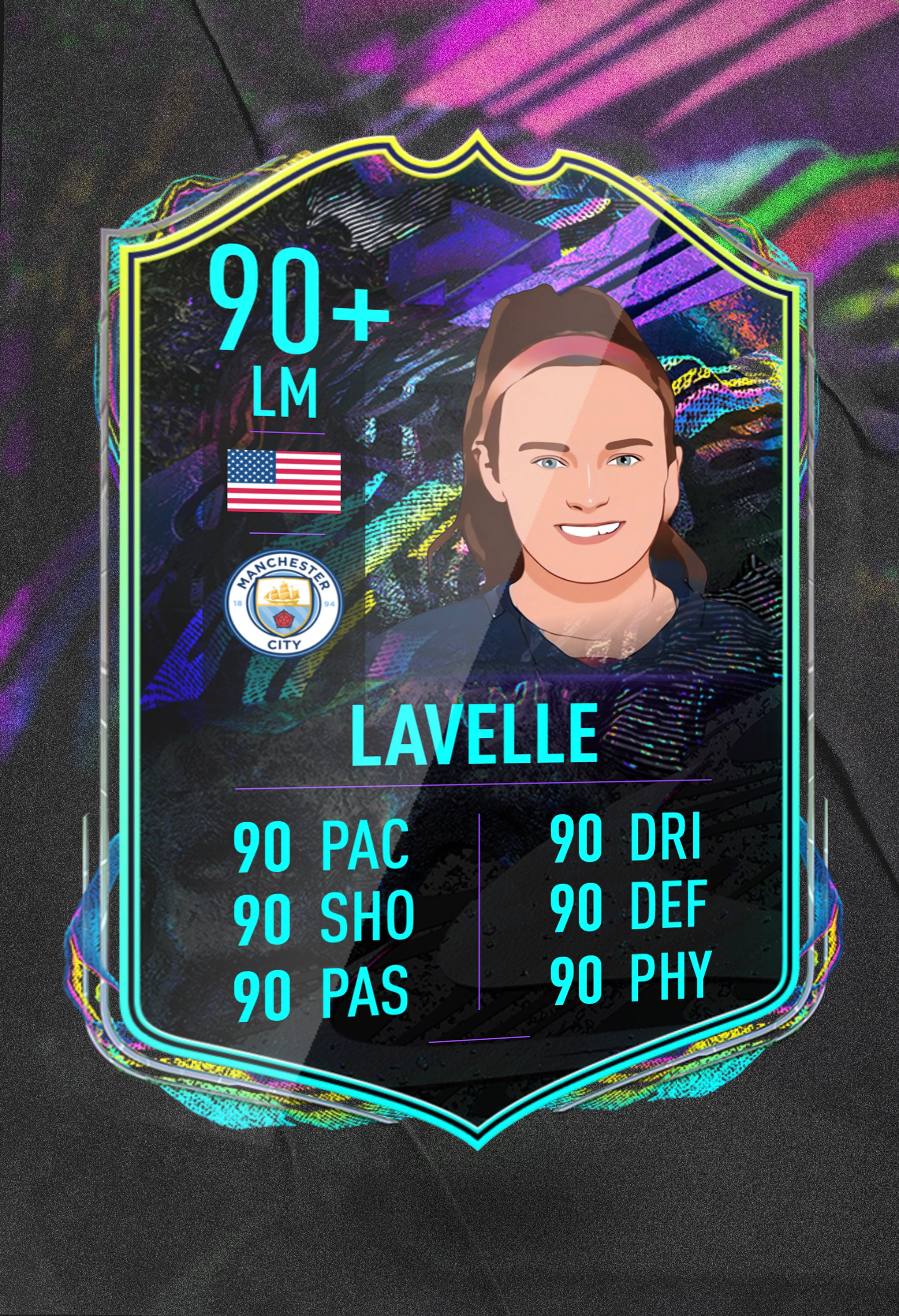 Signed for Manchester City in August of 2020, which saw a wave of USWNT stars arrive to English clubs, Rose Lavelle is a skillful and dynamic midfielder for club and country. The 2019 World Cup was her breakout tournament, where she would start six games and score three goals, earning her the Bronze Ball - the award for the third-most-outstanding player of the tournament.