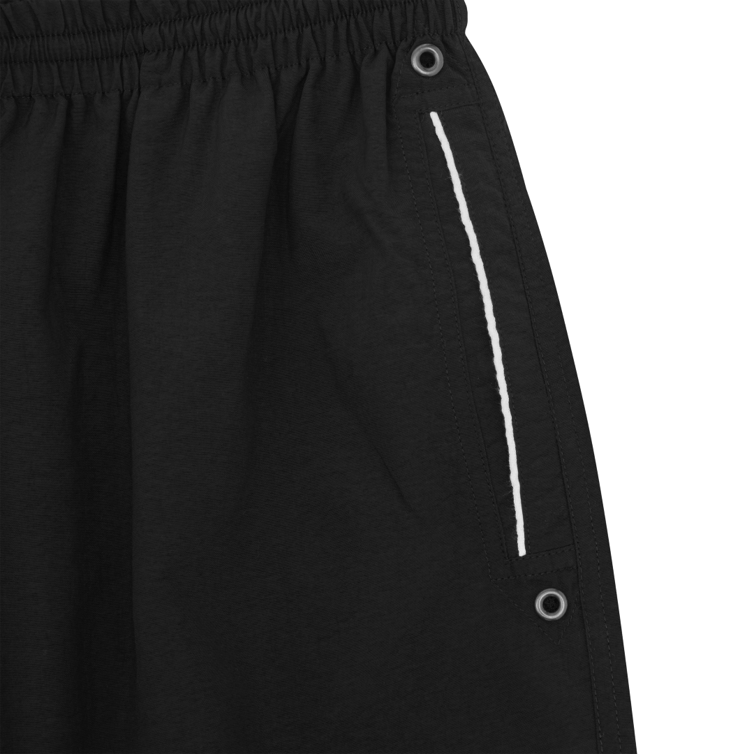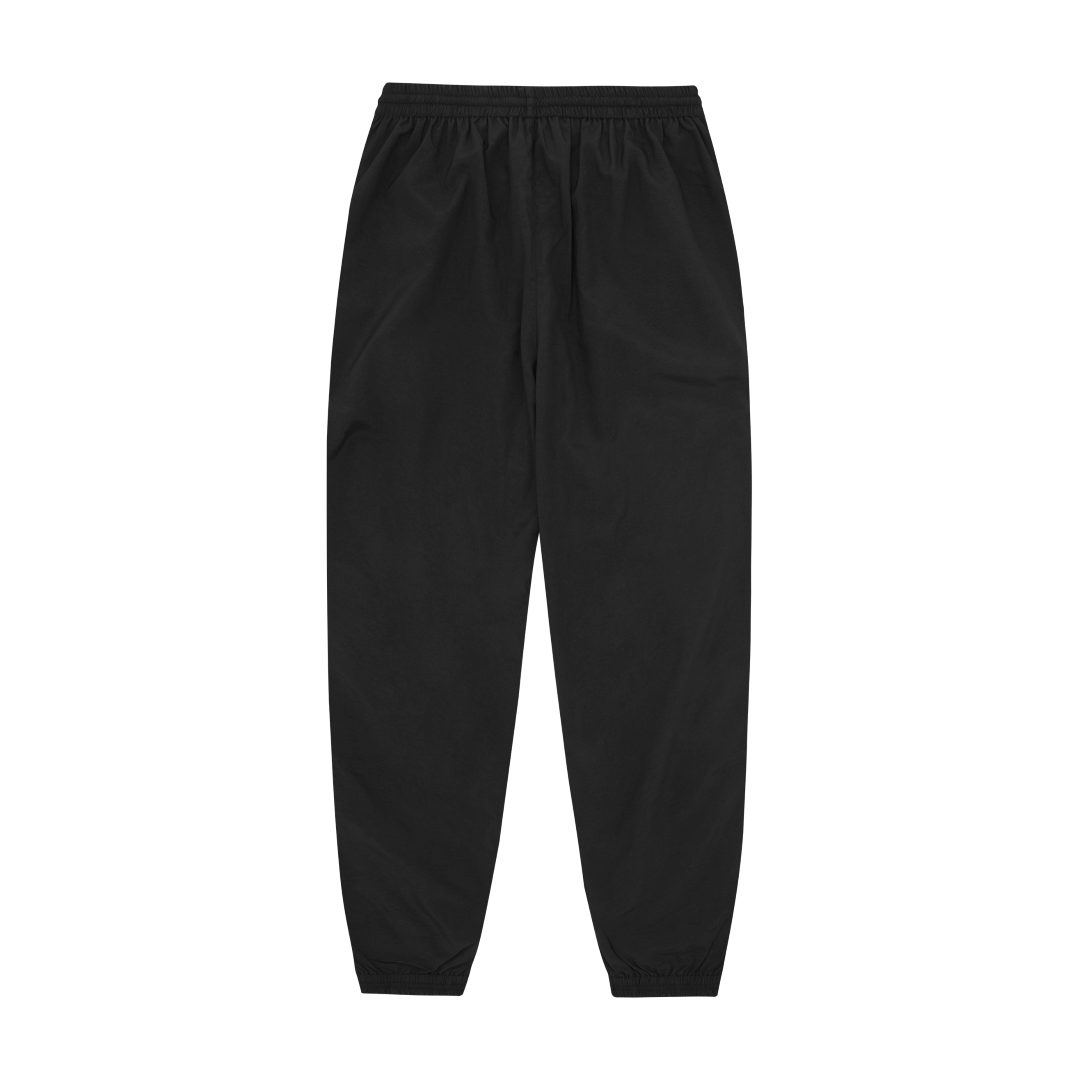 Elasticized waistband. 2 waist pockets with contrast piping. Fan Ink screen printed at left leg. Elasticized cuffs with invisible zipper detail. Made in Portugal.