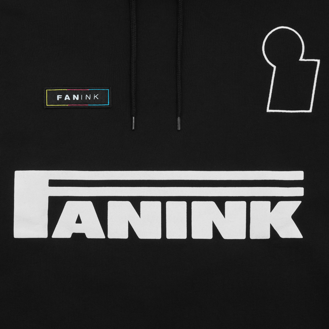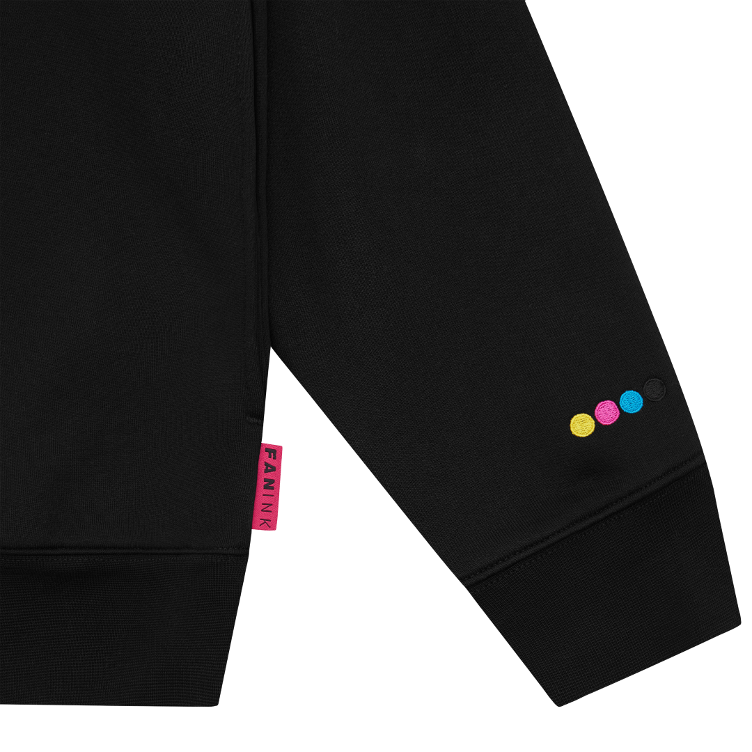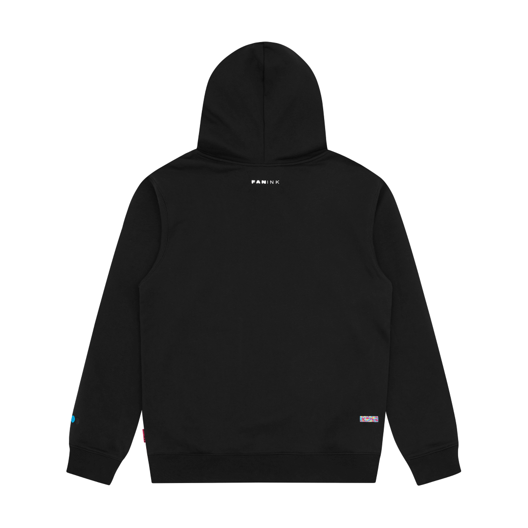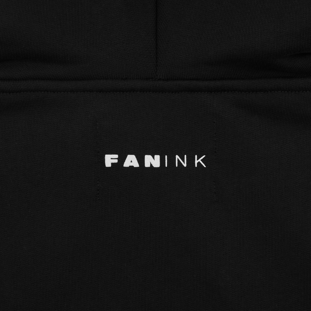 Fan Ink screen printed at front. Fan Ink patch and embroidery at chest. Adjustable drawstrings. Side-entry waist pocket. Fan Ink colours embroidered at left sleeve. Fan Ink woven label at side. Fan Ink digital camo label at back hem. Made in Portugal.