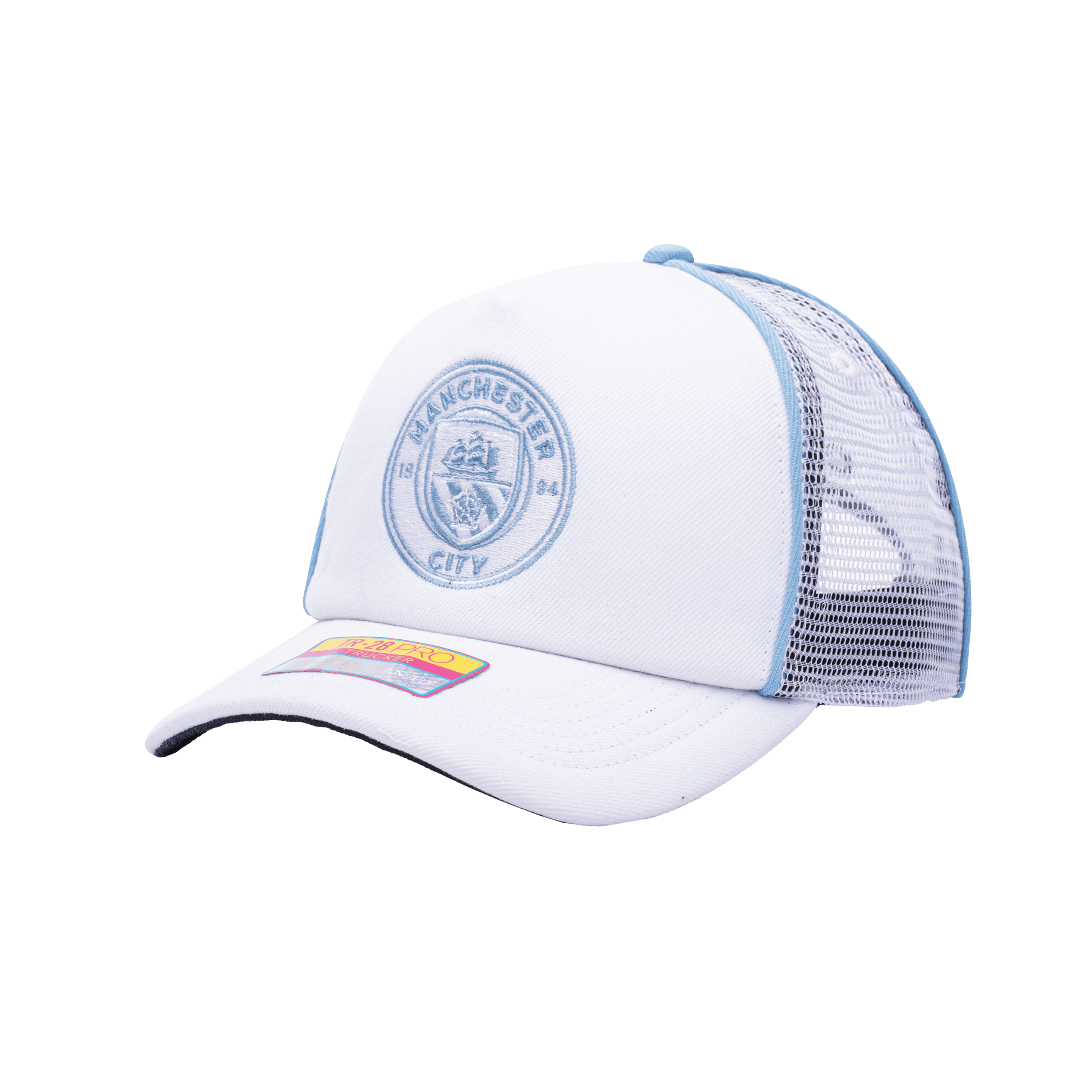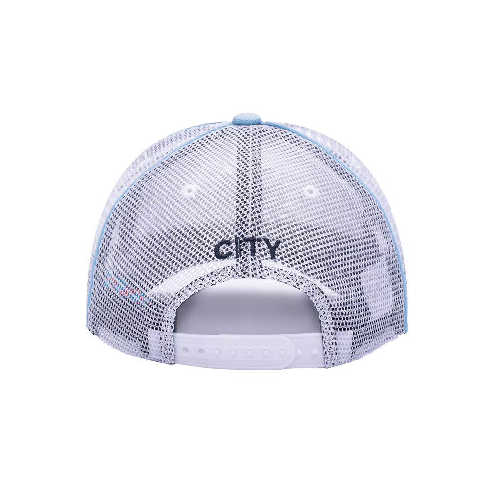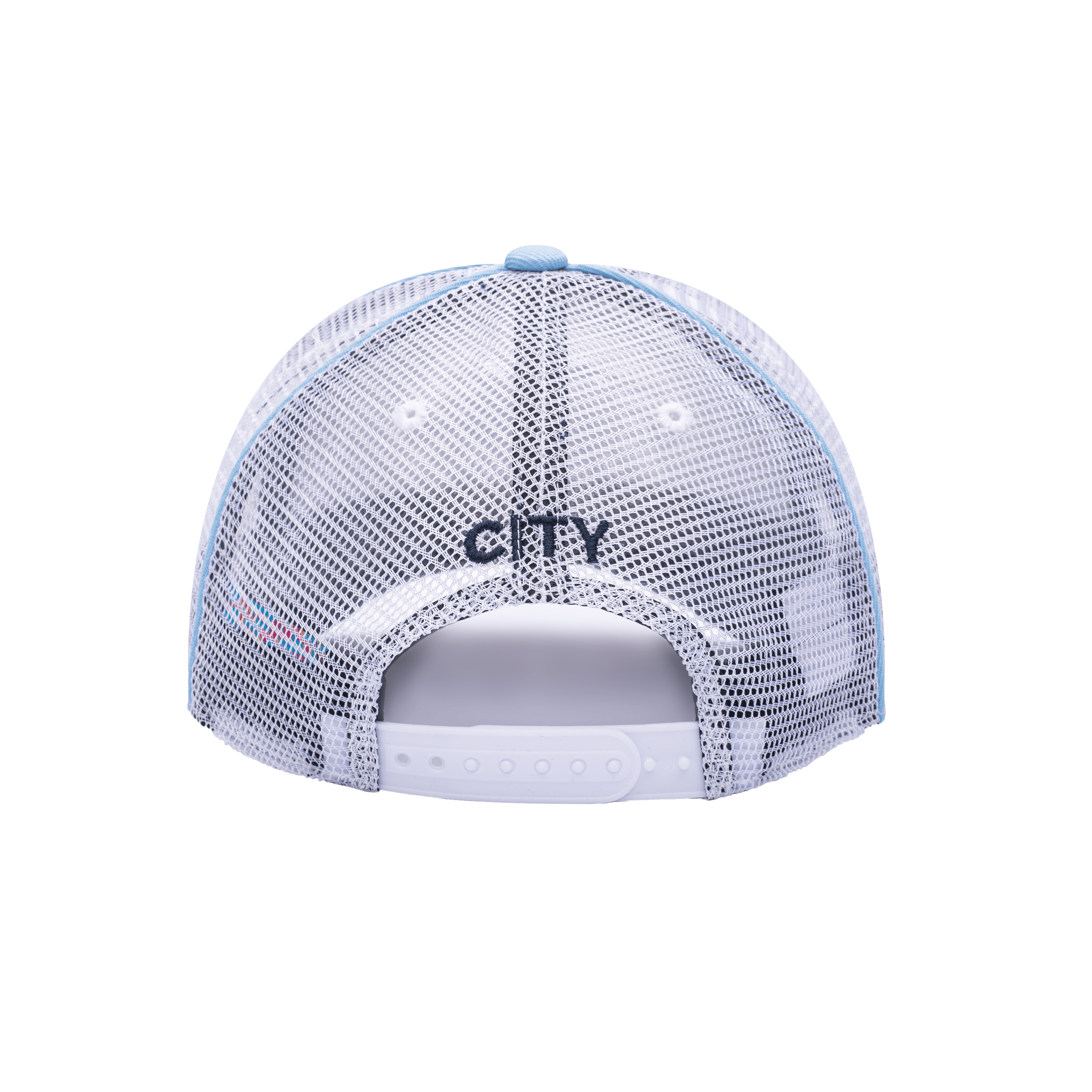 Based out of Manchester, England, show your support for your favorite Premier League club with the official licensed Manchester City Cali Day Trucker! This California-inspired trucker hat features a convenient snapback closure on a mesh back panel, and curved peak brim. This hat is unisex - it can be worn by both men and women!