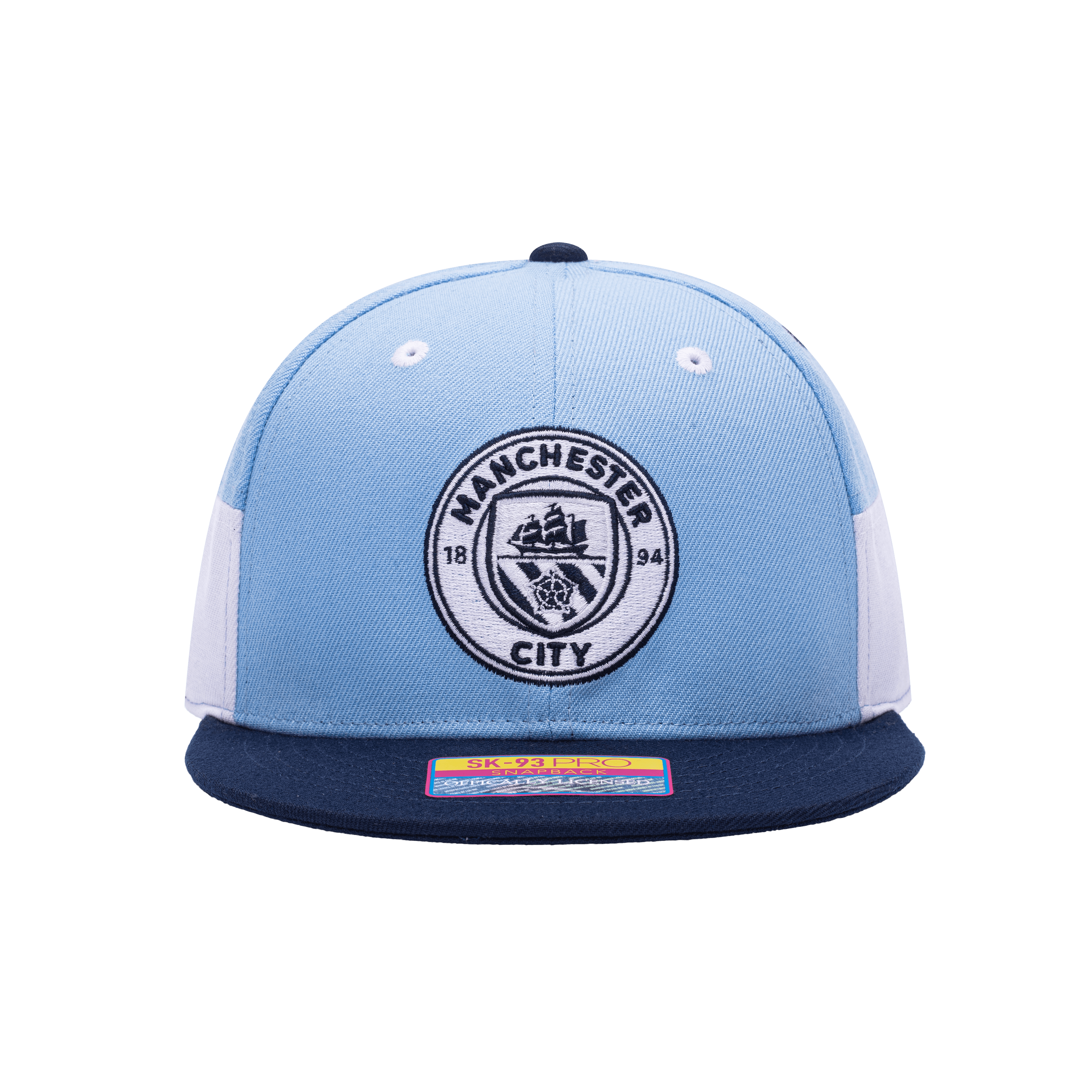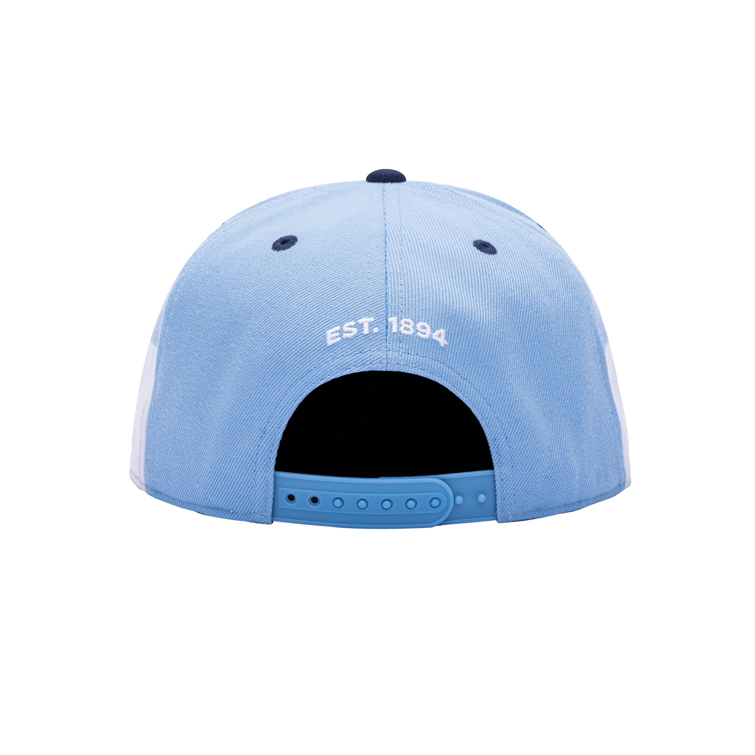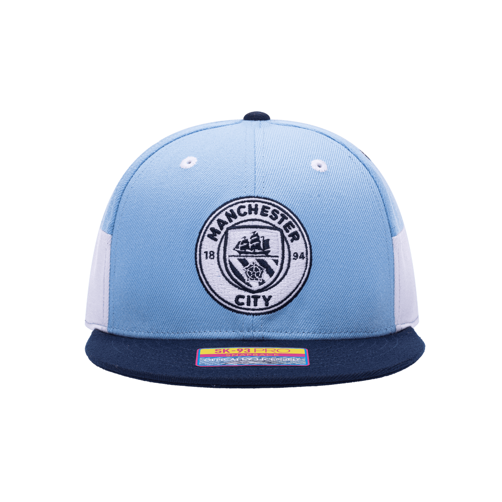 Based out of Manchester, England, show your support for your favorite Premier League club with the official licensed Manchester City Truitt Snapback! This stylish, colour blocked hat was inspired by modern art. It features a convenient snapback closure, high structured crown, and flat peak brim. This hat is unisex - it can be worn by both men and women!